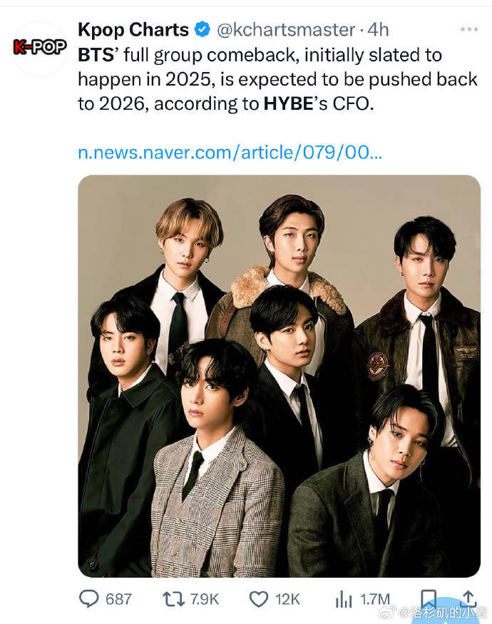 全球巡演计划更让ARMY(BTS粉丝名)陷入疯狂。虽然具体日程要等到1月14日公布,但票务平台Viagogo的数据显示,已有超过200万用户设置了巡演提醒,纽约、伦敦、首尔等城市的酒店预订量较去年同期暴涨300%。值得注意的是,这次回归正值K-pop全球竞争白热化阶段,新世代男团不断刷新数据,BTS能否延续“三冠王”(Billboard 200、Hot 100、Artist 100同时登顶)的辉煌?业内人士分析,成员solo期间积累的个人影响力可能成为破局关键——田柾国去年 solo 单曲《Seven》创下Spotify流媒破百亿最快纪录,朴智旻《MUSE》专辑持续在 Billboard 200 榜单停留48周,这些成绩都为团体回归打下坚实基础。